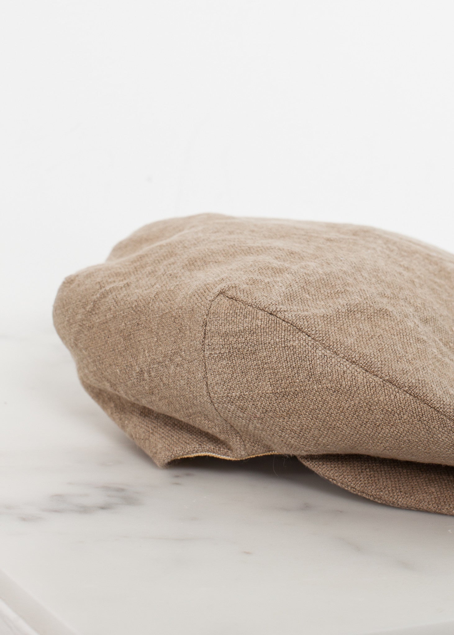 Super Duper Hats' Big Moon is your anywhere, for any reason accessory. With its traditional newsboy style and genius fit, this hat is fantastic addition to any closet. Hidden interior pocket. Color Beige. 50% Cotton, 50% Jute, Fodera Lining. Made in Italy. Addis is wearing a 61.